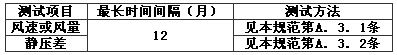 2 靜壓差、風速或風量測試應符合表A.2.2-2的規定。