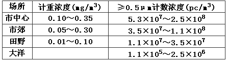 從表1、表2中可以看出,各地區、場所大氣環境質量差別較大,若在環境質量較差的地區建廠,設計中應采取有效的技術措施以確保潔凈廠房的技術要求。