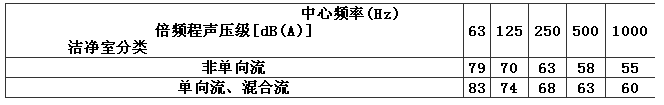 在《潔凈室及相關受控環境——第四部分,設計、施工和啟動》IS0 14644-4-2001標準中規定:“應依據潔凈室內人的舒適和安全要求及環境(如其他設備)的背景聲壓級來選擇適宜的聲壓級。潔凈室的聲壓級范圍為40~65dB(A)”。