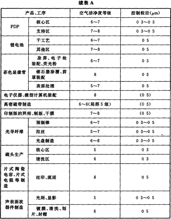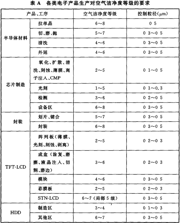 地址:上海市沈磚公路5666號臨港科技城B-6F附錄A 各類電子產品生產對空氣潔凈度等級的要求