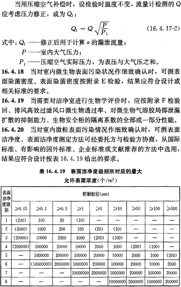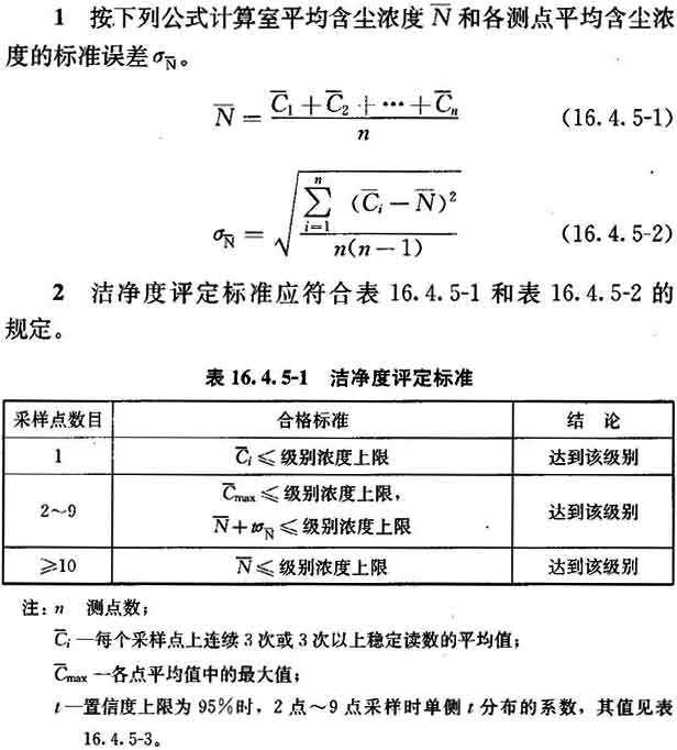 16.4.5 空氣潔凈度級別應按附錄E檢驗微粒計數濃度,然后按以下程序計算出空氣潔凈度級別并評價。