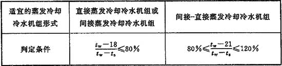 9.5.4 適宜的蒸發冷卻冷水機組形式應根據室外空氣計算參數選用,判定條件應符合表9.5.4的規定。