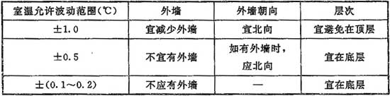 8.1.11 工藝性空氣調節區,當室溫允許波動范圍大于±1.0℃時,外窗宜北向;等于±1.0℃時,不應有東、西向外窗;等于±0.5℃時,不宜有外窗,如有外窗時,應北向。