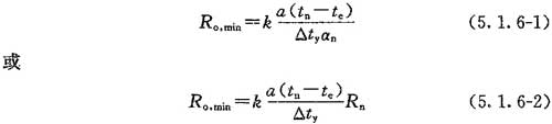 5.1.6 除外窗、陽臺門和天窗外,設置全面供暖的建筑物,其圍護結構的最小傳熱阻不得小于按下列公式計算所得值: