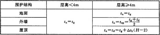 注:tn為冬季室內計算溫度(℃),td為屋頂下的溫度(℃),tg為工作地點溫度(℃),tnp為室內平均溫度(℃),△th為溫度梯度(℃/m),H為房間高度(m)。