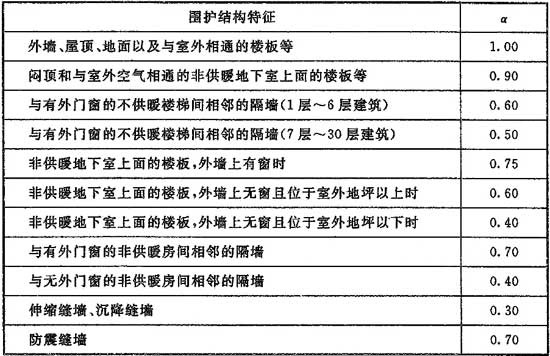 α——圍護結構溫差修正系數(shù),按本規(guī)范表5.1.6-3采用;
