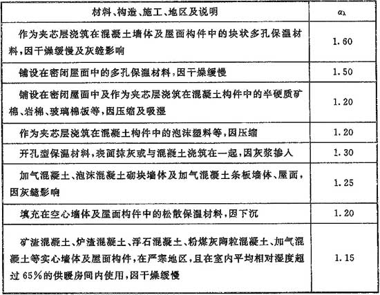 表5.2.4-2 材料導熱系數(shù)的修正系數(shù)αλ