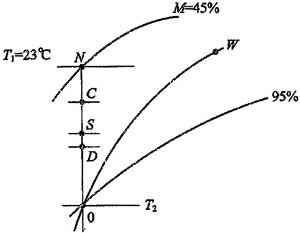 現在對相對濕度有上限控制要求的空氣調節工程越來越多。這類工程雖然只要求全年室內相對濕度不超過某一限度,比如60%,并不要求對相對濕度進行嚴格控制,但實際設計中對夏季的空氣處理過程卻往往不得不采取與恒溫恒濕型空氣調節系統相類似的做法。所以在這里有必要特別提出,并把它們歸并于一起討論。