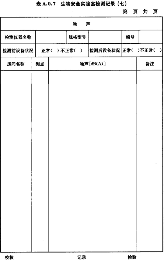 A.0.7 生物安全實驗室房間噪聲的檢測應按表A.0.7進行記錄。