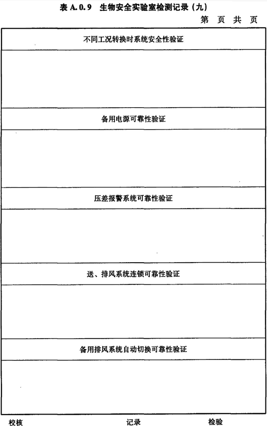 A.0.9 生物安全實驗室配電和自控系統的檢測應按表A.0.9進行記錄。