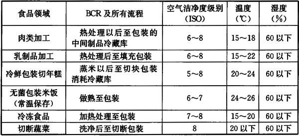 下圖為食品工廠不同生產區域和空氣潔凈度等級表: