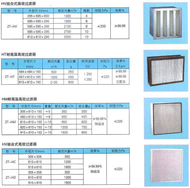 高效過濾器分為有隔板、無隔板、組合式等,有隔板高效過濾器材質選用玻璃纖維作濾料,膠版紙、鋁箔為分隔板,與木框或鋁合金框膠合而成;具有過濾效率高、阻力低、風量大的特點,廣泛用于各種局部凈化設備和潔凈廠房。無隔板高效過濾器材質選用超細玻璃纖維做濾料,熱熔膠為分隔板,與各類外框裝配,外觀精美,過濾效率高;與有隔板高效過濾器相比,在同等條件下,具有體積小,重量輕等優點。